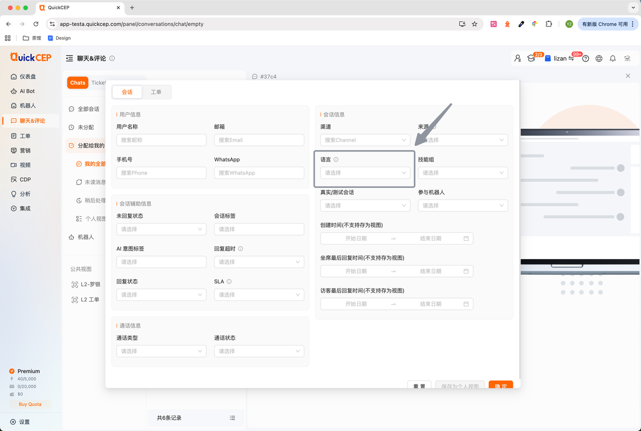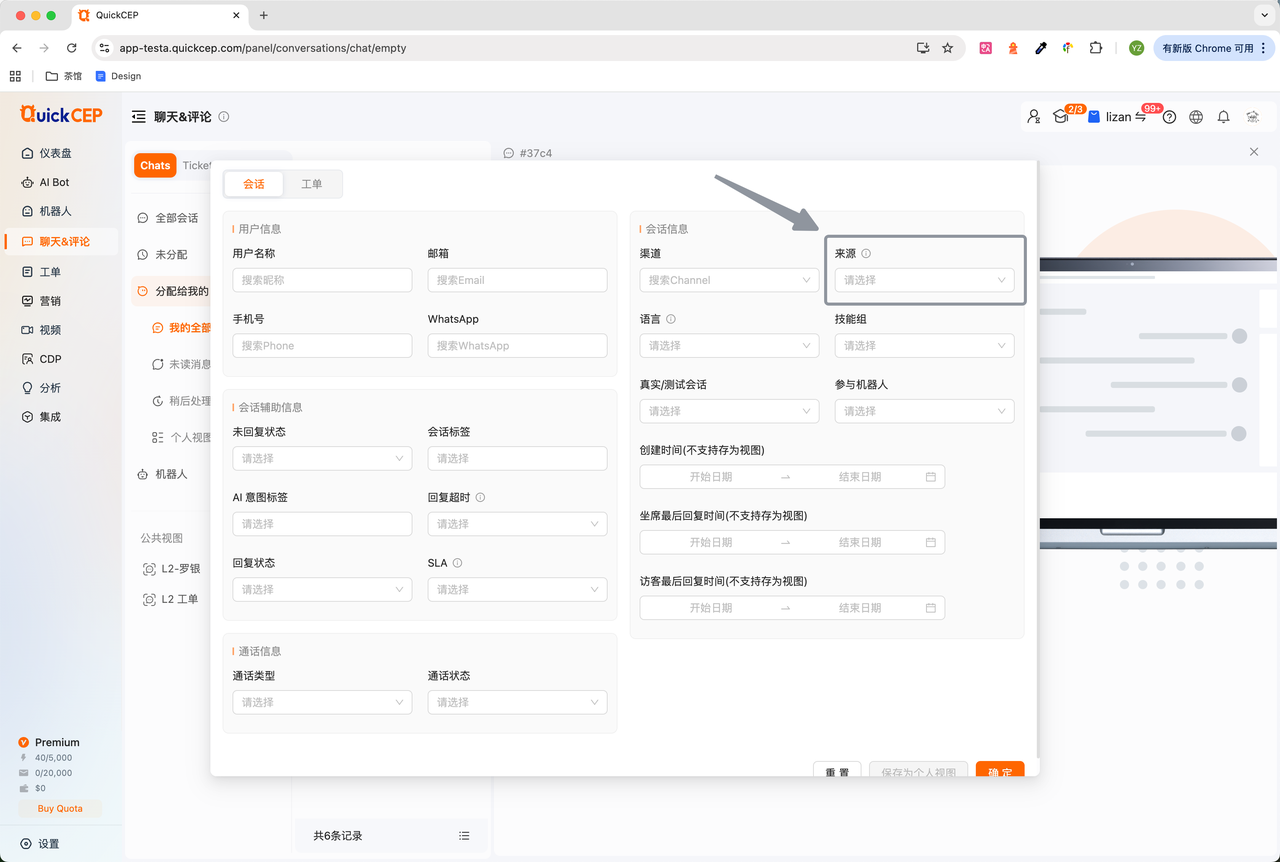 1. 会话来源筛选:开发者可通过Livechat开放接口传递 `Medium` 参数,该参数可用于会话筛选 → 对接文档:(https://help.quickcep.com/FAQ/0947)