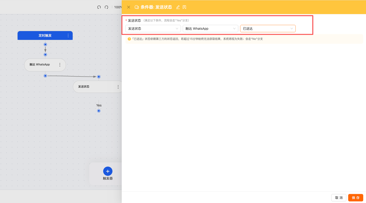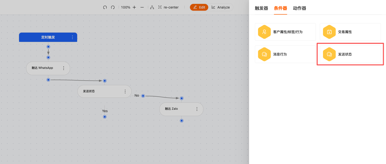 营销自动化-增加条件器:发送状态