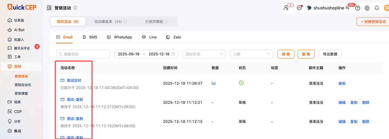 支持按用户在社媒渠道的关键行为时间进行筛选,帮助客户精准定位特定时间段内的活跃用户群体。