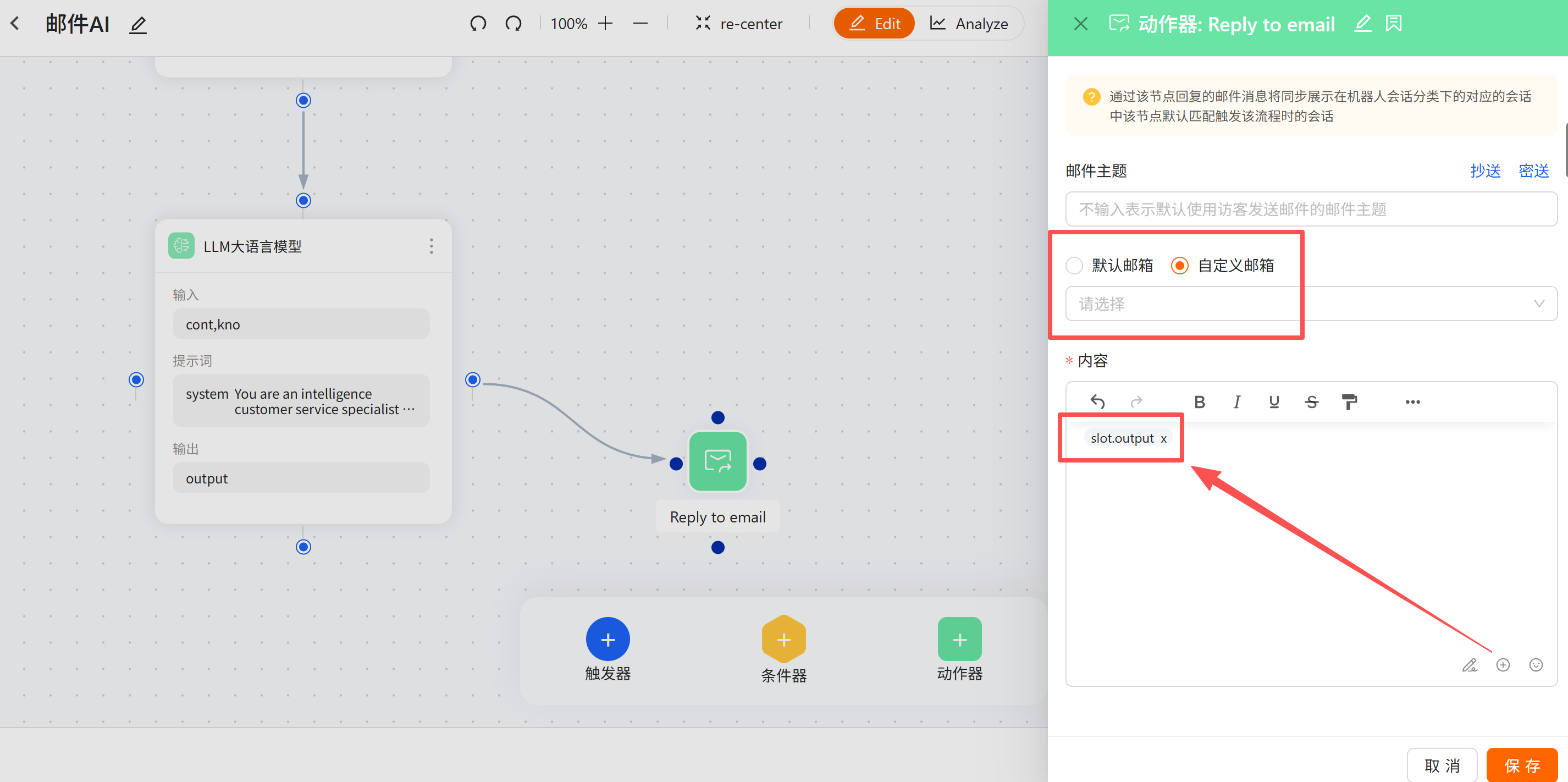 三、配置邮件意图触发,自动回复邮件Flowbot
