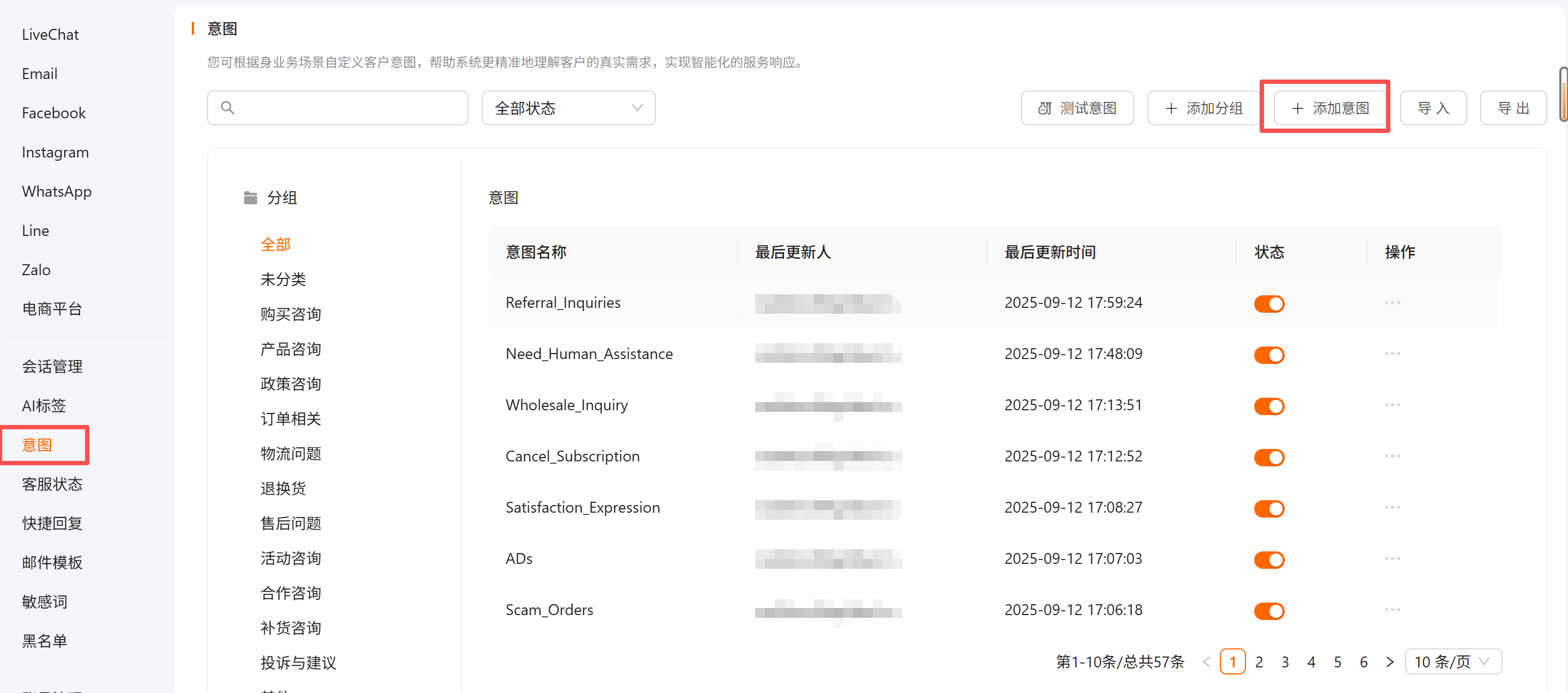 配置哪些场景下需要回复意图,系统内置了52电种商场景的邮件AI意图,如果需要自定义意图,请根据以下文档链接跳转配置 自定义意图