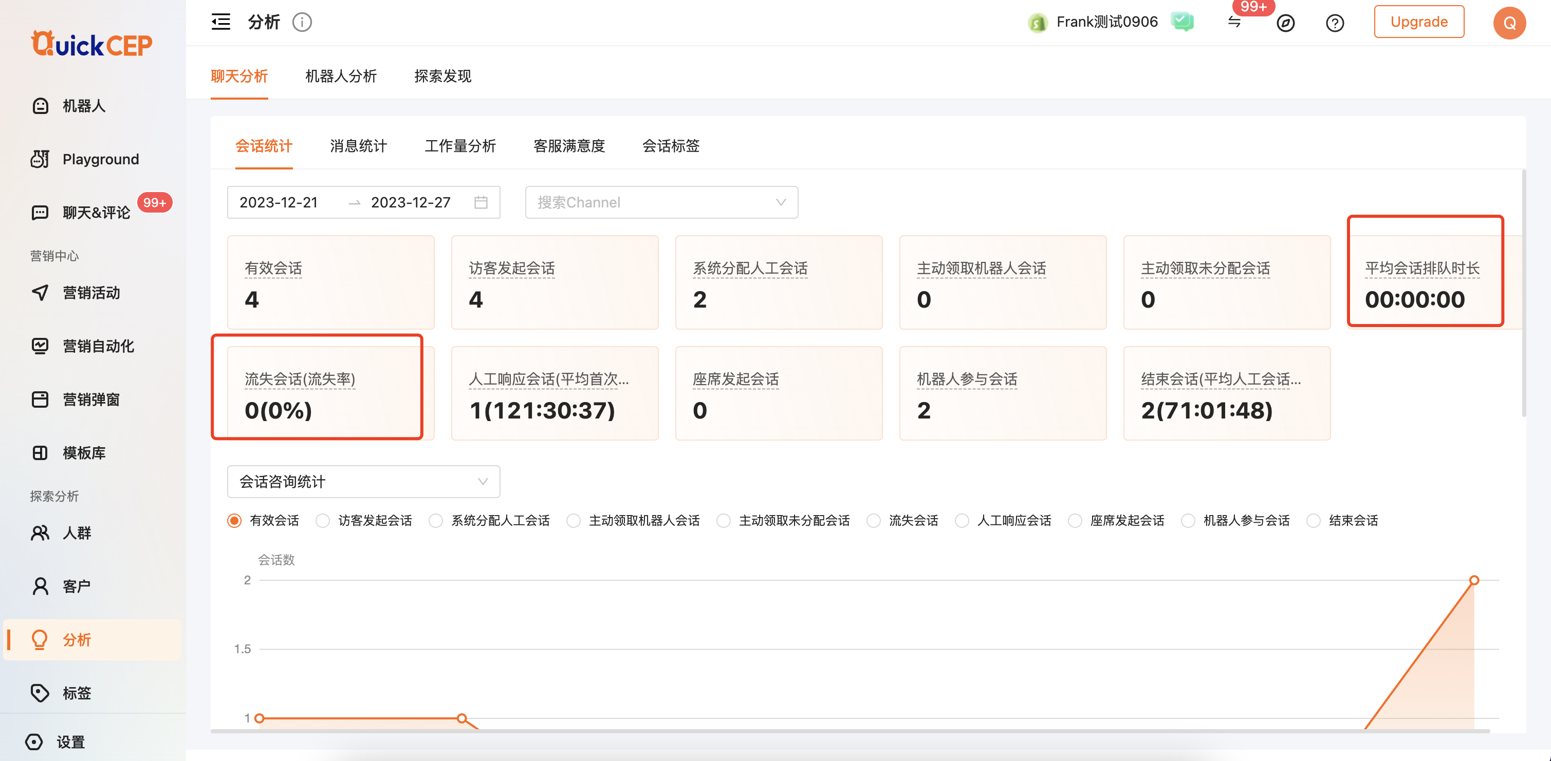 (1)聊天会话分析中新增会话排队时长、排队流失率统计展示;