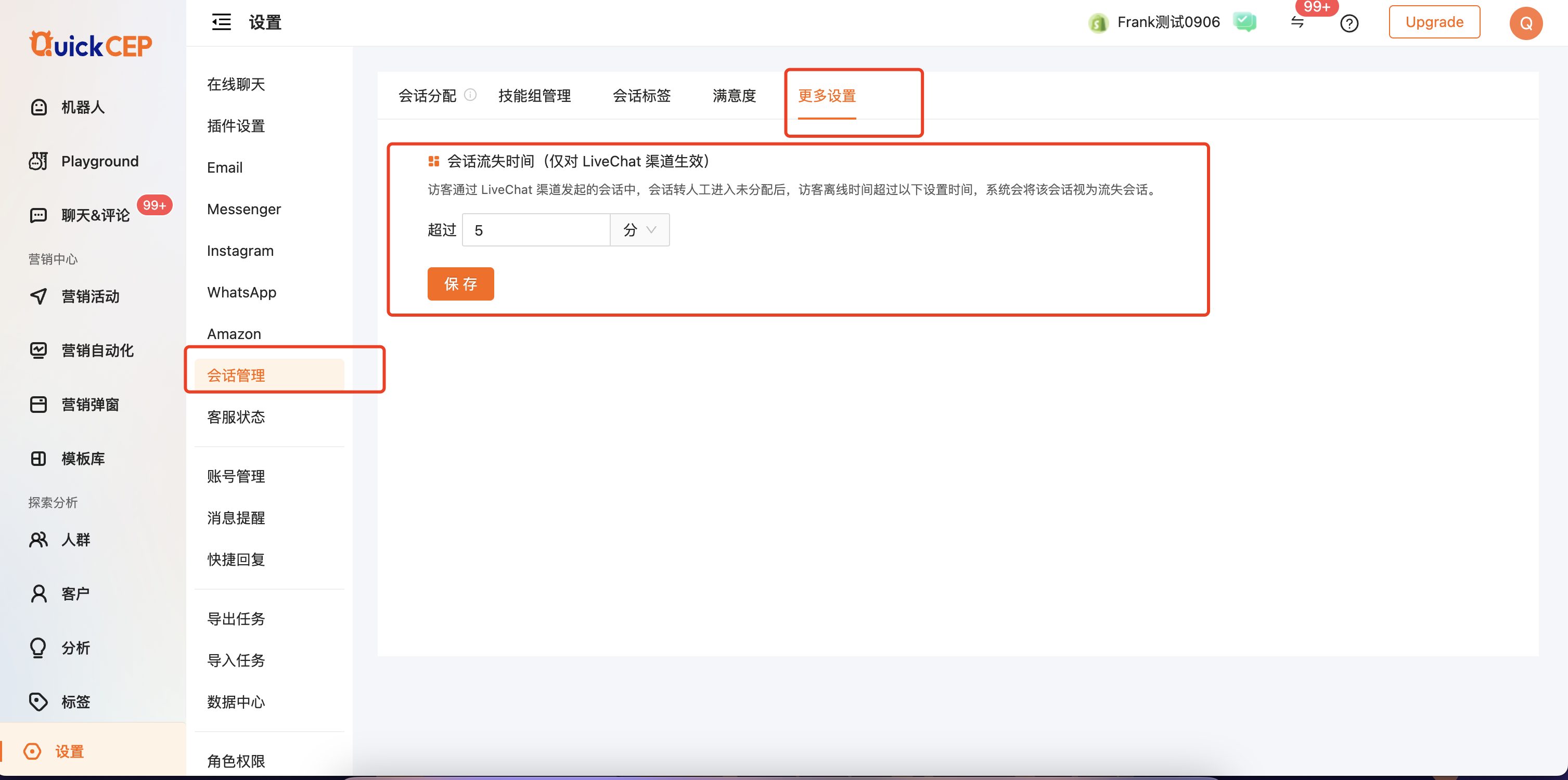 二、会话流失时间定义(仅LiveChat渠道生效)
