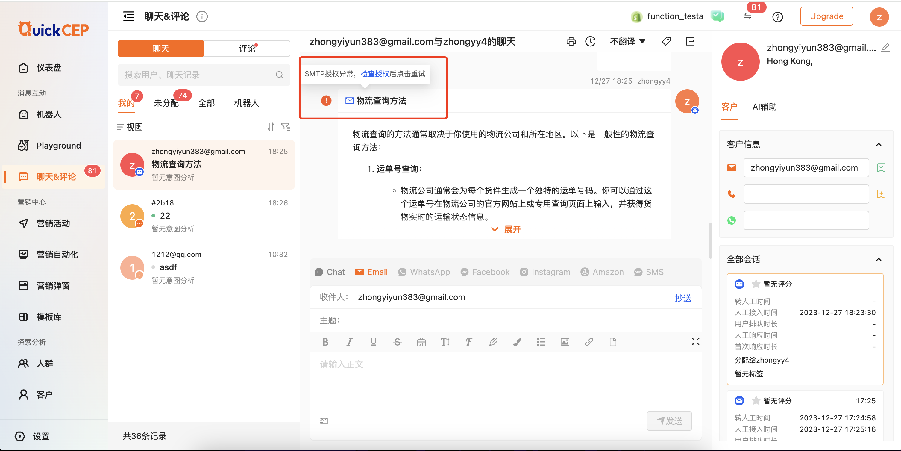 各个渠道座席消息若发送失败,则会展示对应的失败原因及提示,部分失败可以重试发送消息