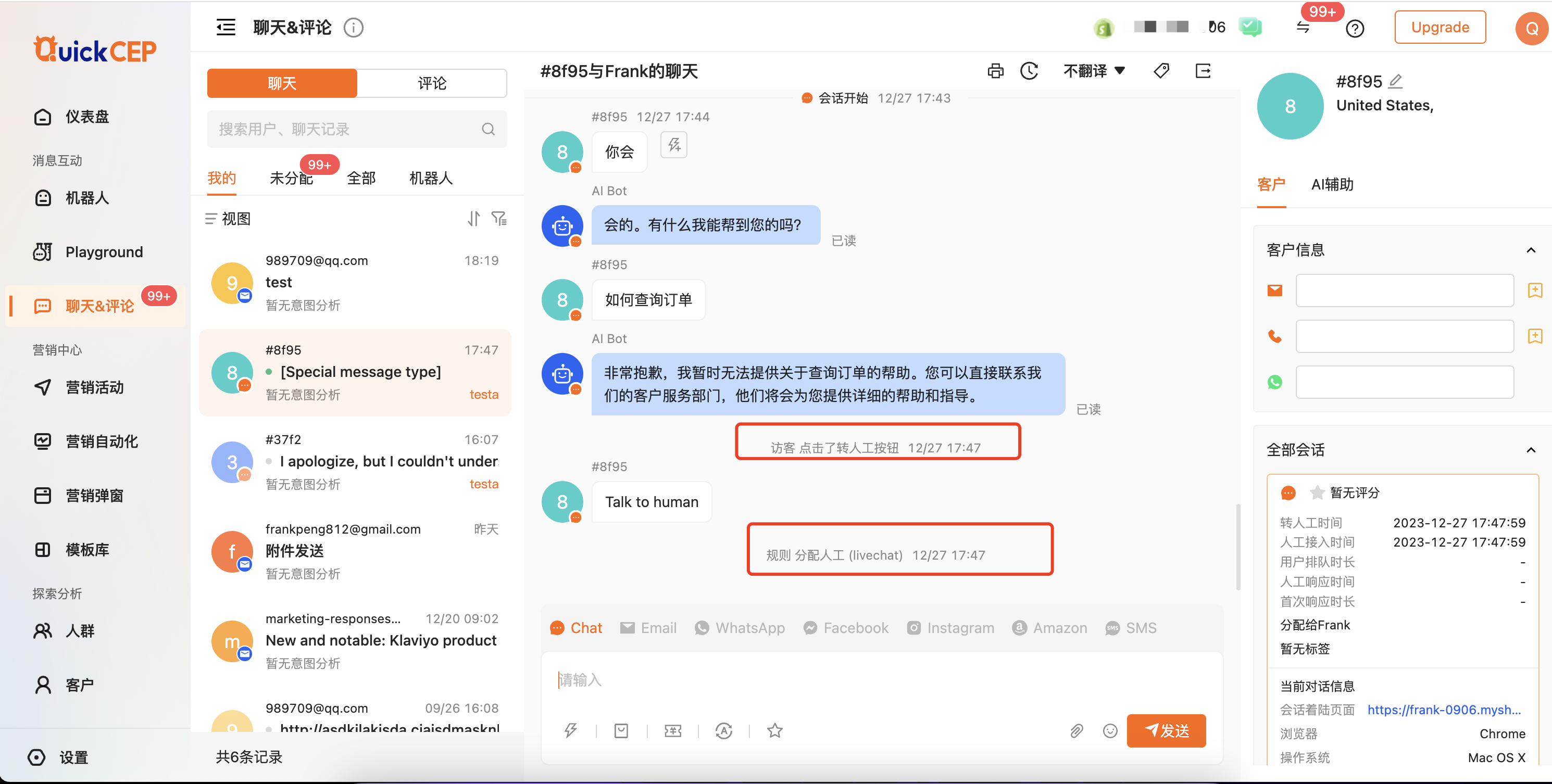 会话分配配置策略及交互升级,同时新增支持配置WhatsApp、Amazon的渠道会话分配策略,整体分配策略更加灵活