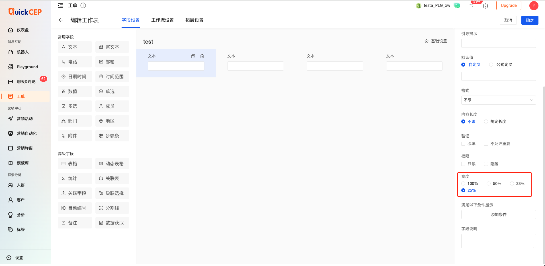 (12)工单优化:工作表字段配置比例增加33%、25%;工单视图支持展示工单数量。